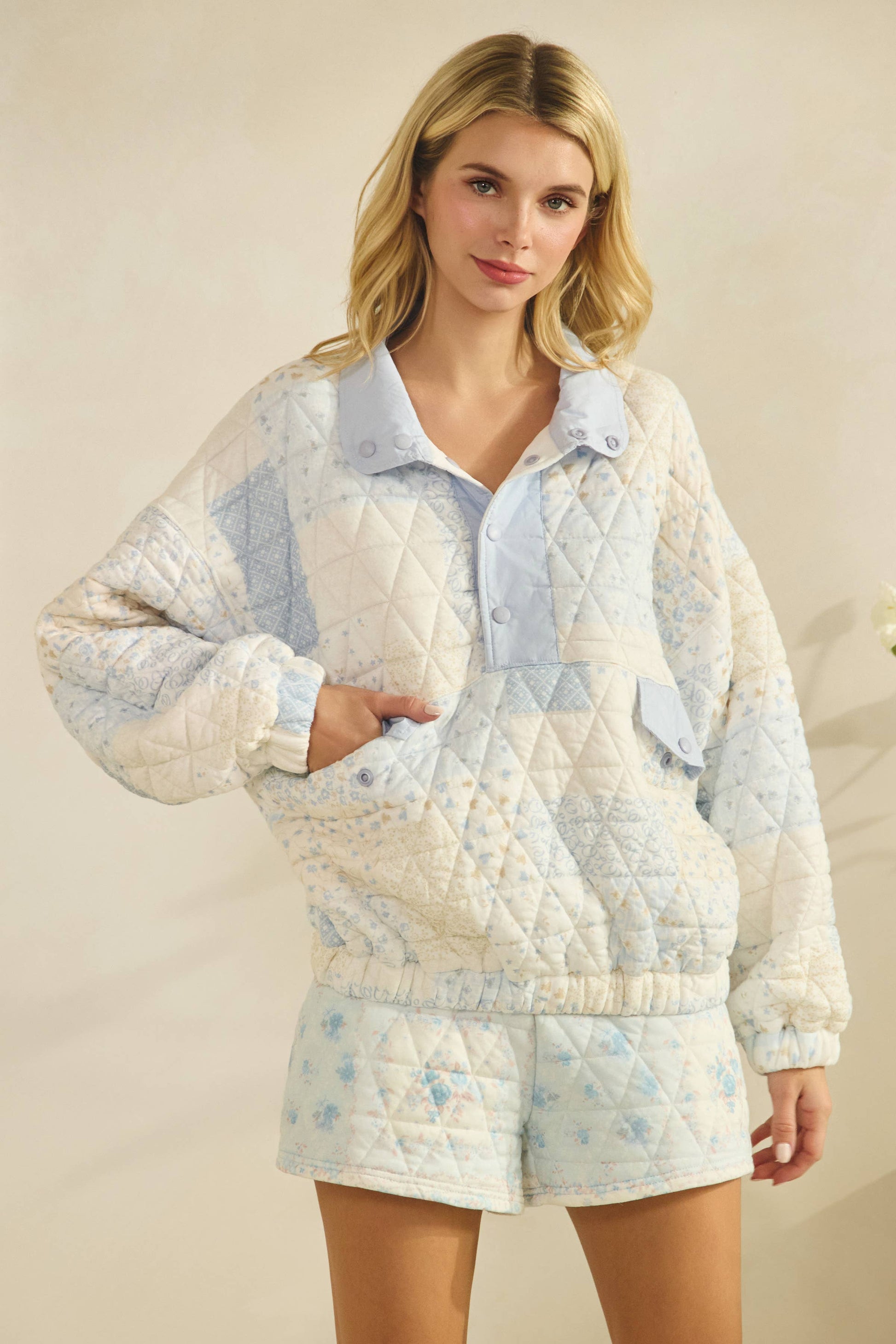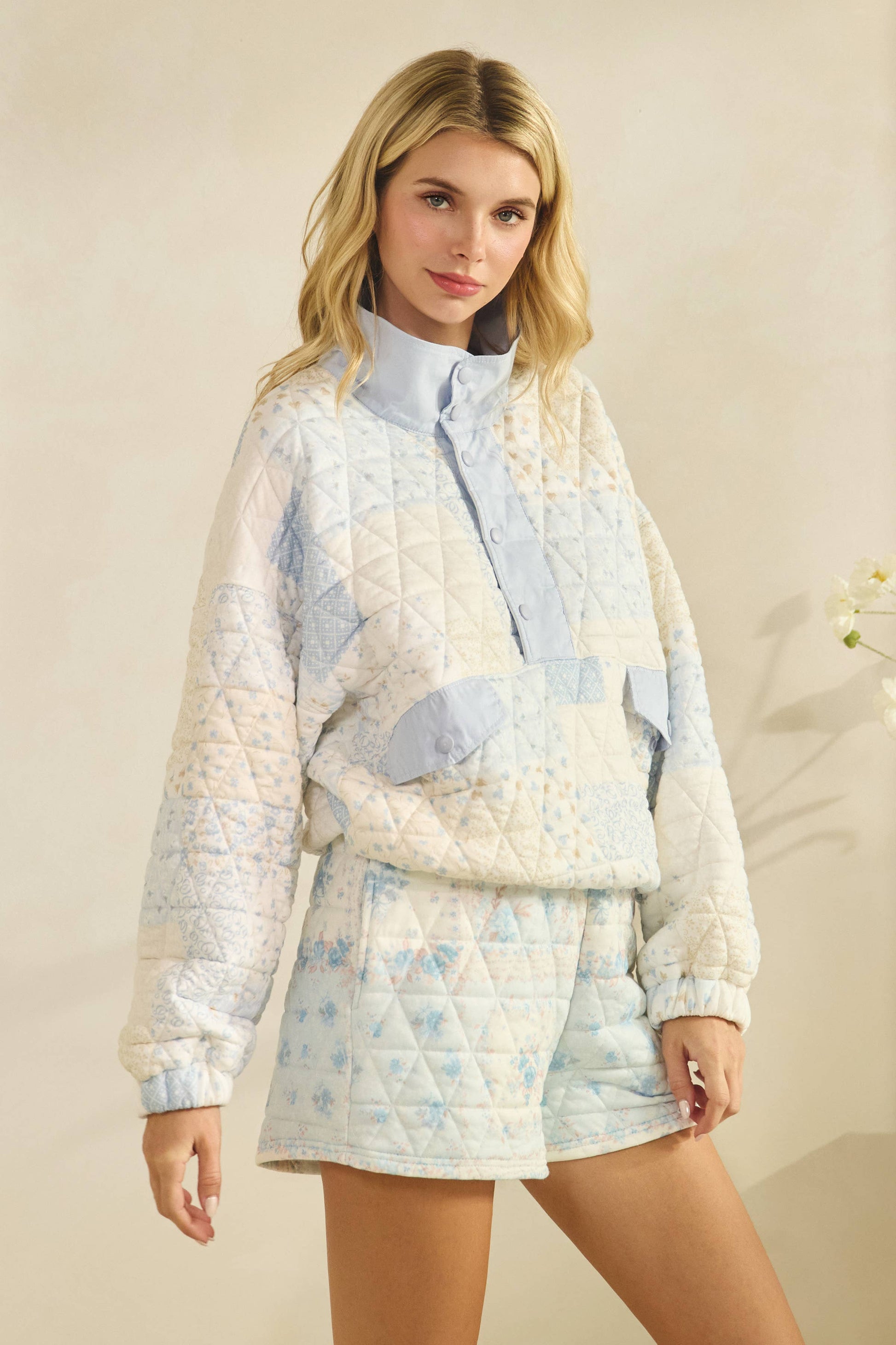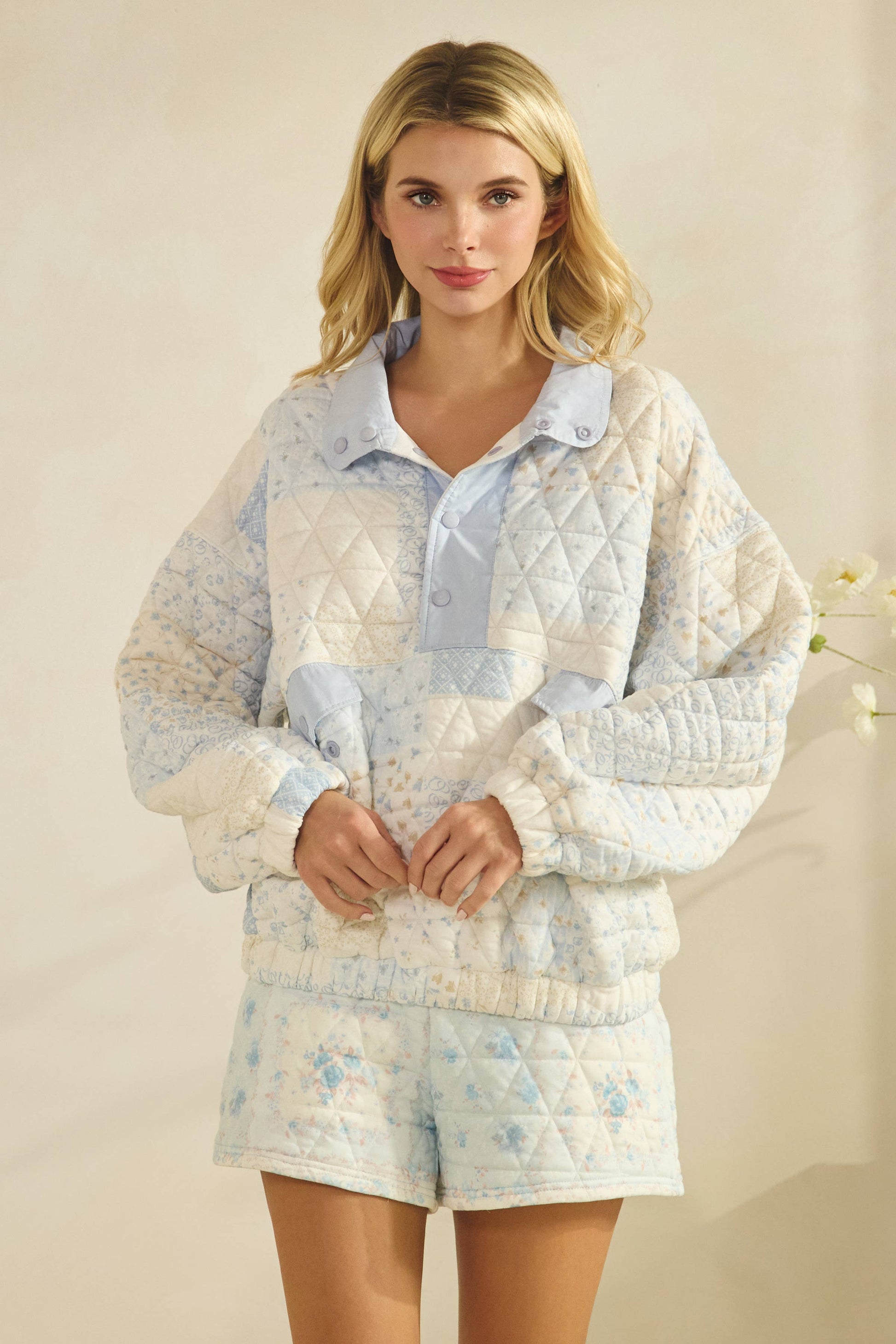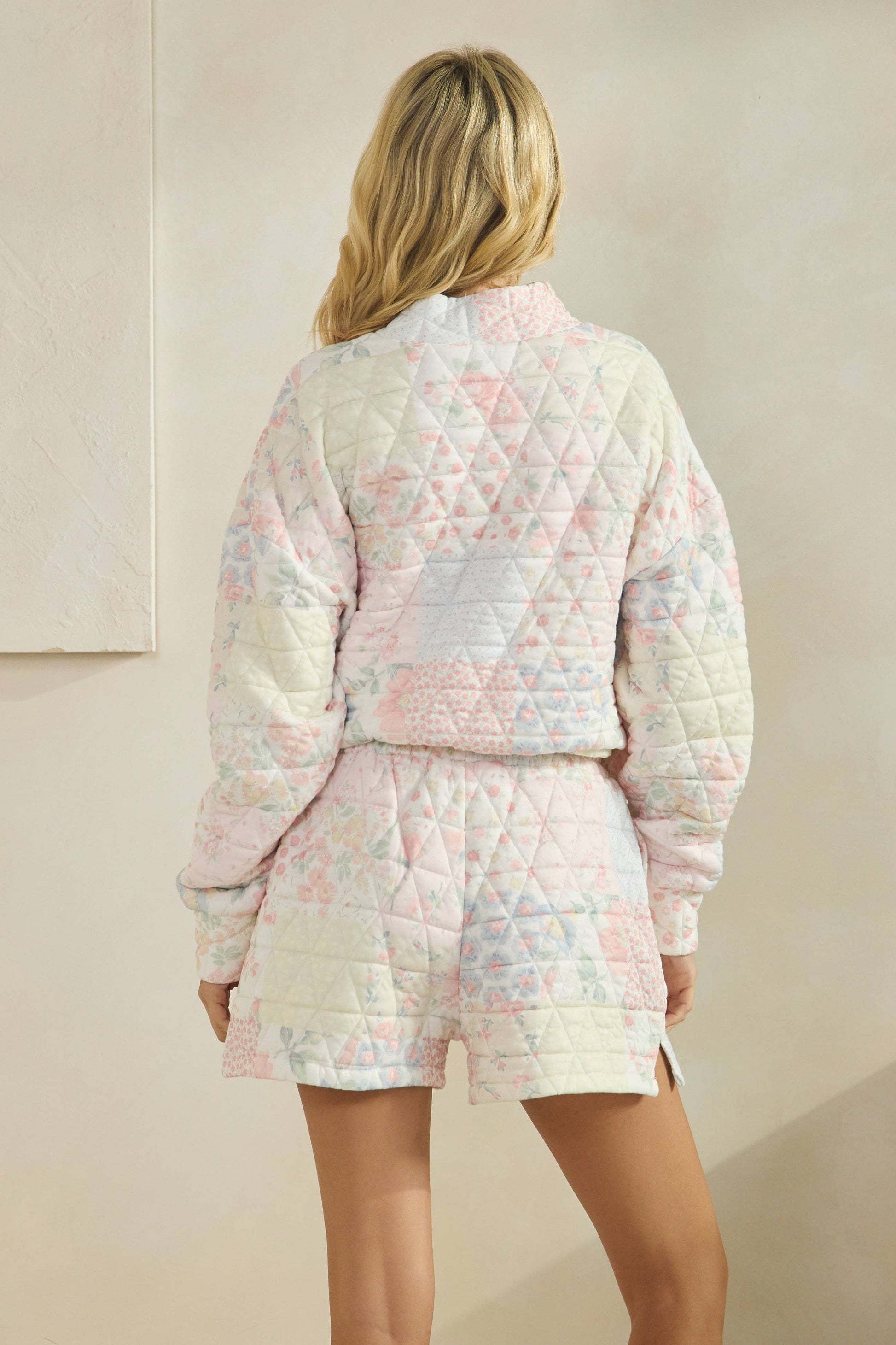 Floral Textured lounge shorts Pairs with pullover or pants Model is 5'9 and wearing a size small.